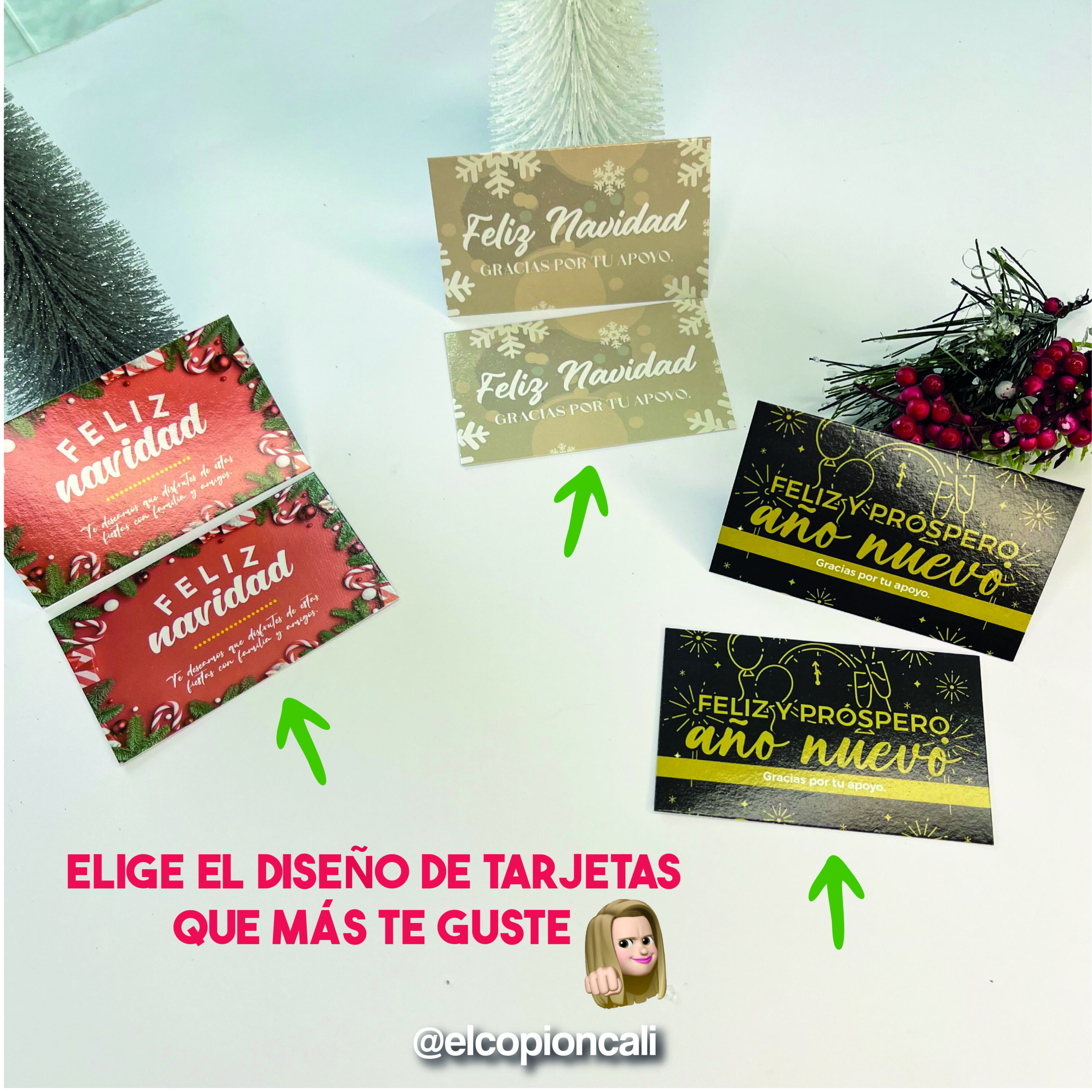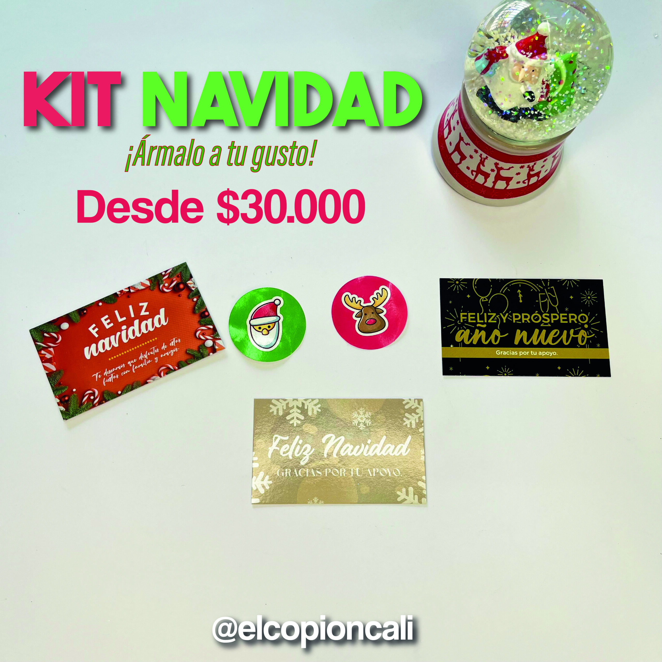 Kit navideño para emprendedores con tarjetas, stickers y opción de sello personalizado. Ideal para decorar tus pedidos en Navidad. 🎅🎄